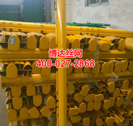 桃型(xíng)立柱護欄網多是由桃形立柱和三角折彎護(hù)欄網組合,網片絲徑3.5~8mm 網孔多為長方形(xíng):常用7.5*15cm 網片高度1,。8m~~2.5m,長度多為3m,立柱尺寸:常用5cm*7cm 7cm*10cm 厚度(dù)1mm ,表麵多浸塑處理,顏色:立柱和網片多用不(bú)同(tóng)顏色,如黃色,藍色(sè),白色,紅色等 兩兩組合,更顯美觀。立柱特征:立柱壁厚為1.00mm,板材成型通過冷彎和冷軋。其結構簡單,形狀為規則的半橢圓型,安裝方便。柱體上的掛鉤由(yóu)缺口分為幾部分並沿柱體縱向均勻地分布於柱體(tǐ)兩側(cè)。掛鉤(gōu)板內(nèi)彎成拱型與橢圓型柱體的直(zhí)邊相切,有效的(de)防止(zhǐ)了被撬開,保證了護欄的安全性。